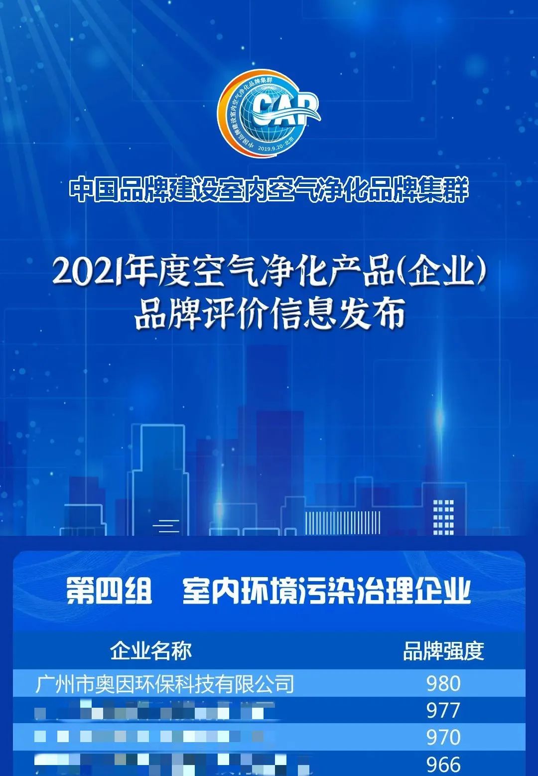 2021榮獲“室內(nèi)環(huán)境污染治理企業(yè)”品牌評價排名第一