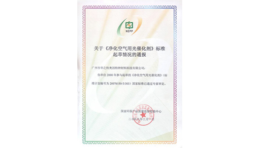 被指定為國家標(biāo)準(zhǔn)“凈化空氣用光催化劑”參編單位